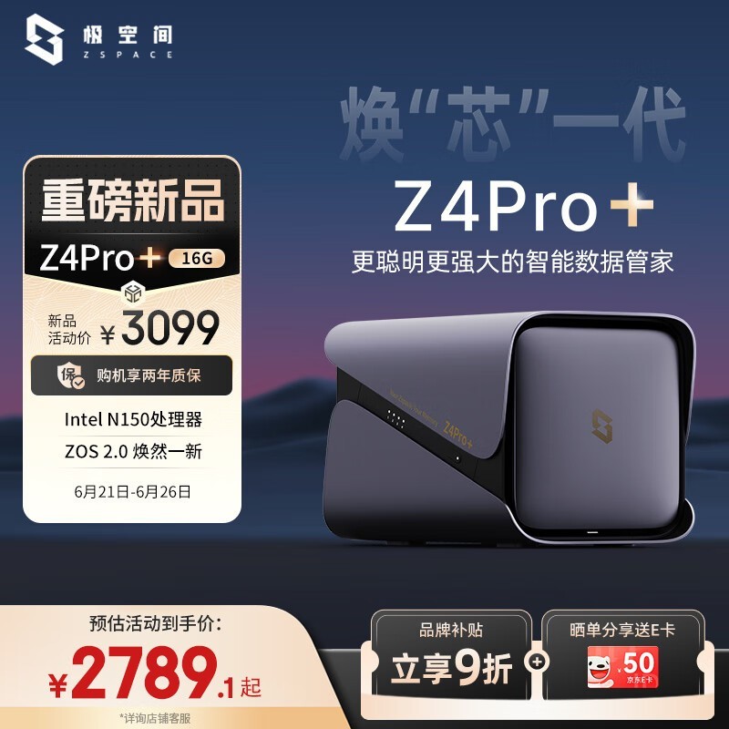 极空间Z4Pro+私有云NAS家庭服务器限时特惠